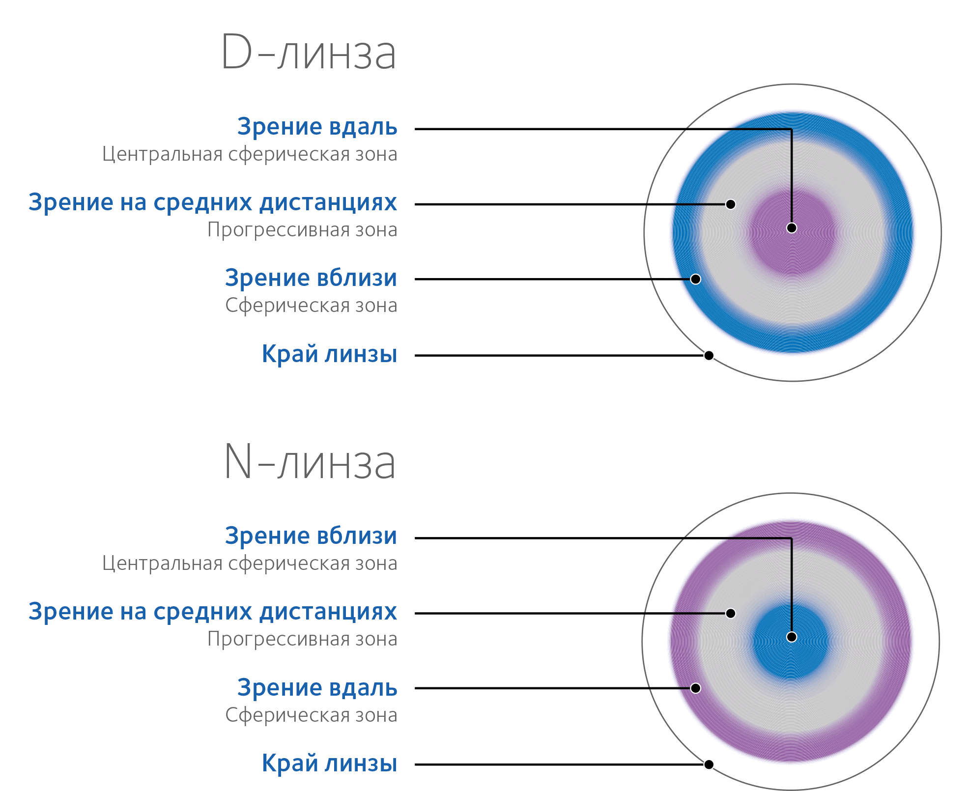 дизайн N (Near близкий) или D (distance даль). Офтальмолог должен подобрать