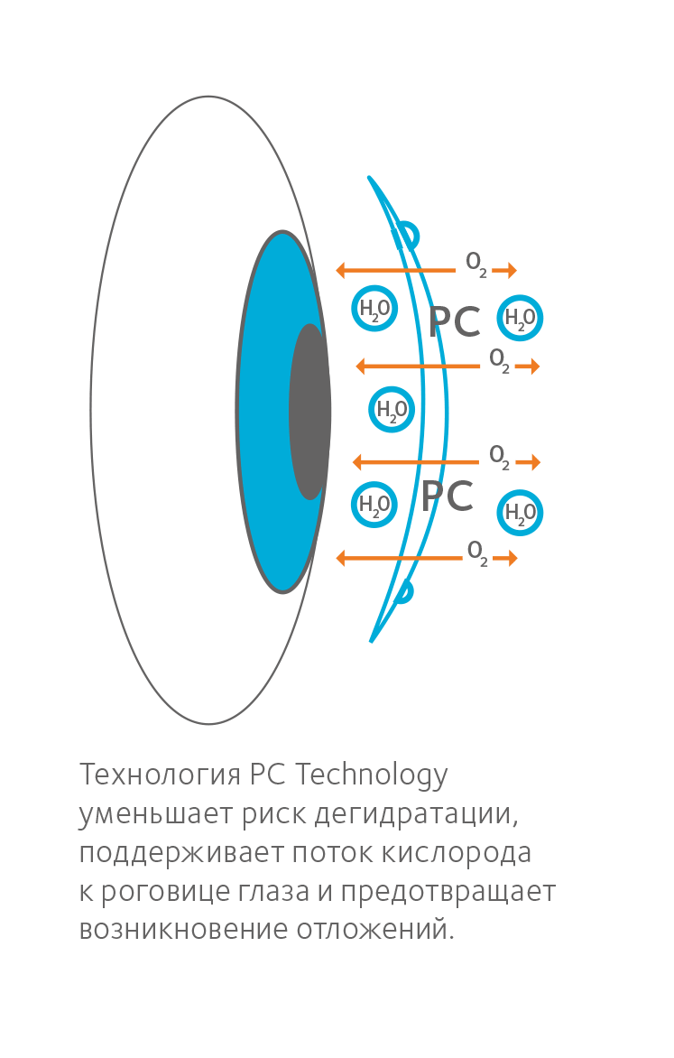технологии "PC" линзы остаются увлажненными до 96%, что и отличает их